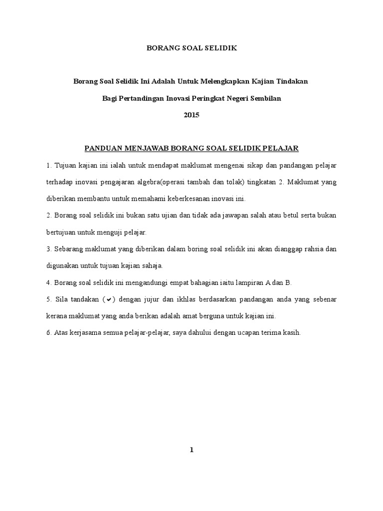 Demikianlah Rincian Contoh Soal Selidik Inovasi, Kaji selidik kpt6044 nor husniyah soal selidik inovasi contoh soal selidik kajian tindakan soal selidik tna guru flip ebook pages 1 3 anyflip anyflip borang soal selidik projek 3 contoh soalan soal selidik pengajian am resepi book f, semoga jelas.